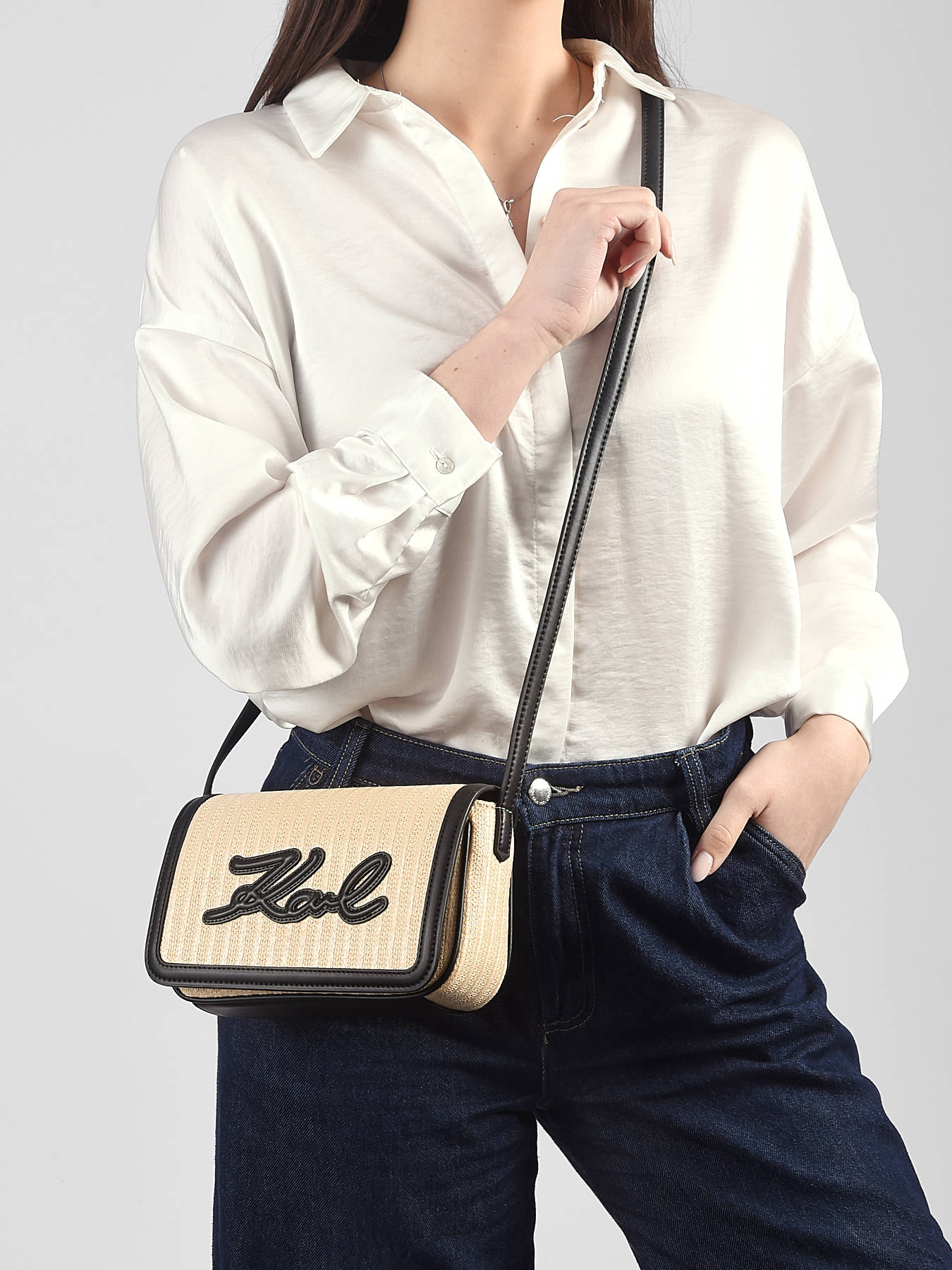 The K SIGNATURE KARL LAGERFELD crossbody bag in polyurethane combines elegance, practicality, and modernity. Designed to be worn across the body with its adjustable strap, it offers optimal comfort while maintaining a chic, contemporary look. Its spacious main compartment easily holds your essentials, while the internal simple pocket provides convenient storage for small everyday items. The flap and magnetic closure adds a touch of sophistication while allowing quick access to your belongings. Lightweight and easy to maintain, this bag stands out for its minimalist and refined design, true to KARL LAGERFELD’s identity, where functionality meets style seamlessly. Perfect for city outings, appointments, or casual occasions, the K SIGNATURE in polyurethane is a versatile accessory that complements any outfit with elegance and simplicity, adding a contemporary and trendy touch.