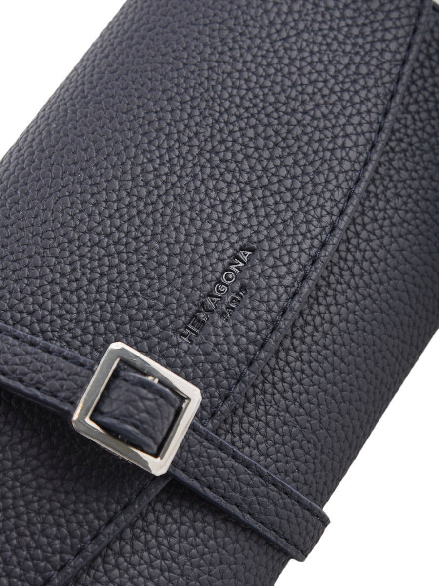 This ceremonial pouch from the Madrid line by Héxagona will seduce you with its quality leather and its grained finish. The closure of this pouch has a magnetic flap. Inside, you have two main gussets with a zippered separator pocket, a flat pocket and a compartment to store your phone. It comes with a removable shoulder strap as well. A very nice pouch to accompany your evenings.