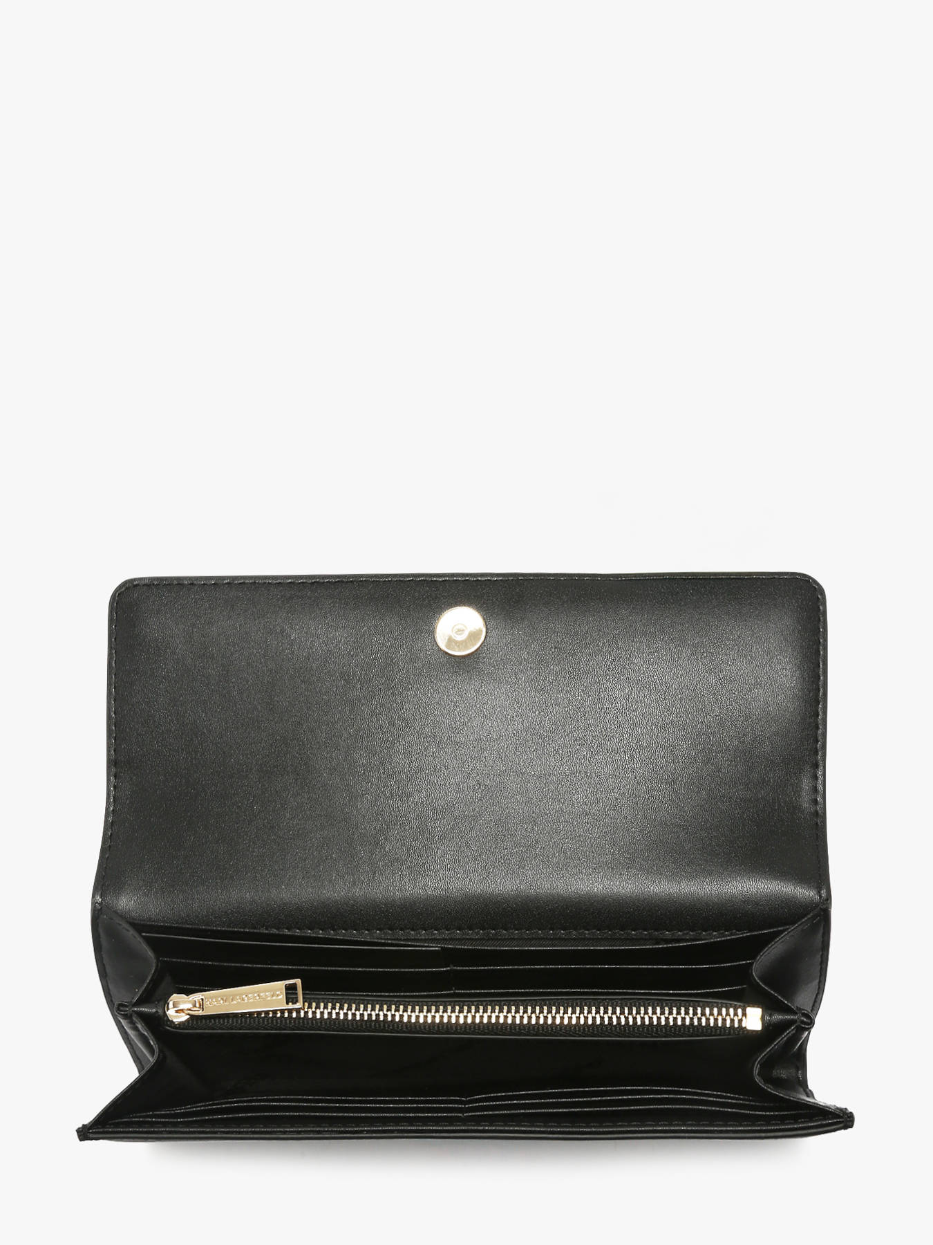 The IKON wallet by KARL LAGERFELD combines elegance and functionality with its full-grain cowhide leather construction, known for its durability and quality. The refined exterior features a magnetic snap closure with a flap, ensuring security and easy access. Inside, it offers ten card slots, perfect for optimal organization of your cards. A dedicated bill compartment and a zippered pocket complete this design, providing secure storage for your essentials. This wallet perfectly balances modern design and practicality while embodying KARL LAGERFELD’s chic and urban spirit. Its compact size makes it easy to carry, whether in a pocket or handbag. An essential piece for those seeking quality, style, and daily organization.