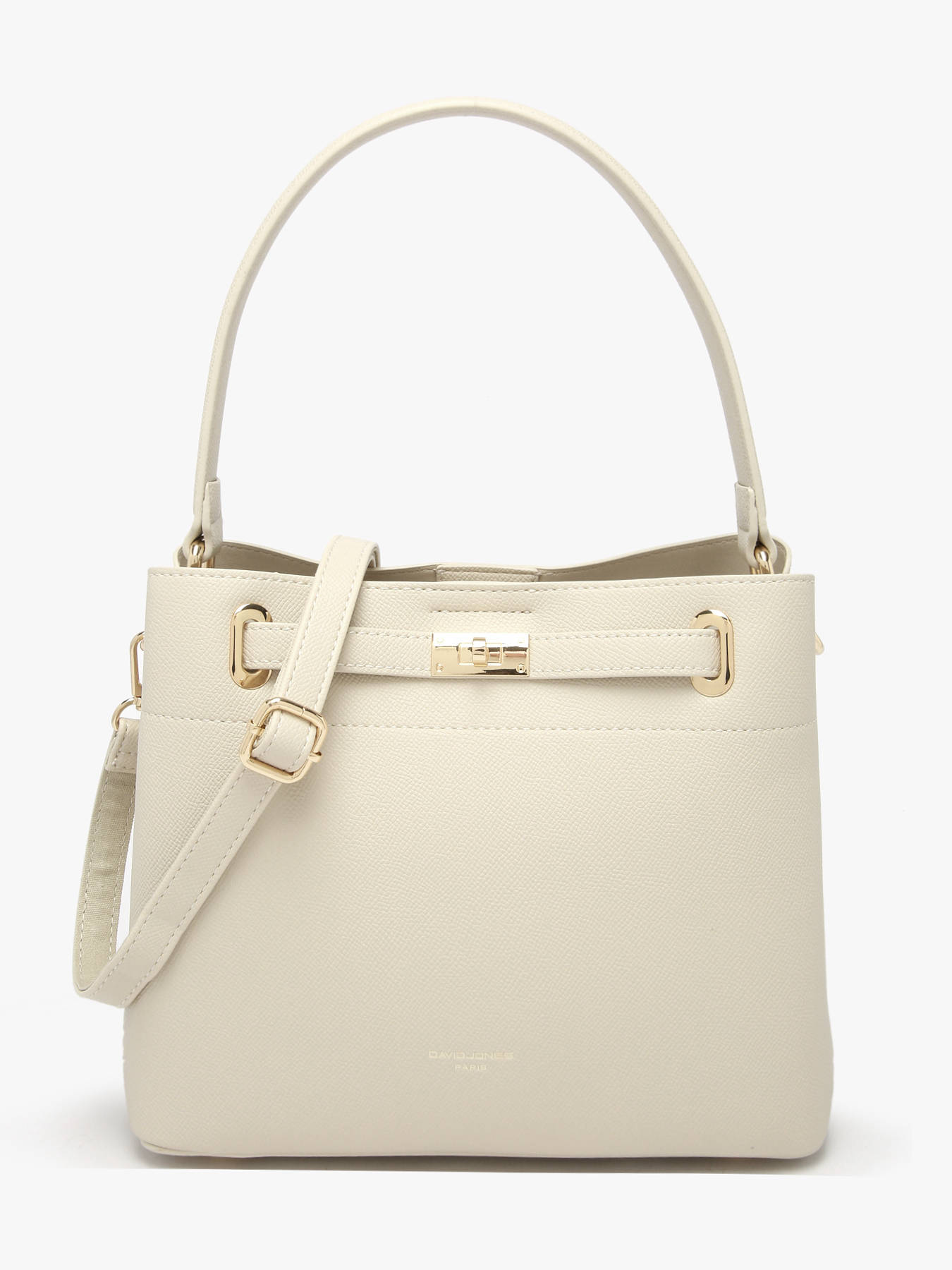 The SAFFIANO Shoulder Bag DAVID JONES combines contemporary elegance with functionality. Made from high-quality PU, it offers a refined, durable texture perfect for daily use. The zip and clasp closure ensures security and practicality, while the adjustable, removable shoulder strap allows wearing it on the shoulder or crossbody. Inside, three compartments, a simple pocket, and a zip pocket provide organized storage for essentials such as phone, wallet, and accessories. Its structured design and careful finishes strike the perfect balance between style and practicality. Compact yet spacious, this shoulder bag is versatile and ideal for urban days or elegant outings. The SAFFIANO David Jones combines comfort, organization, and refinement for a chic, modern look.