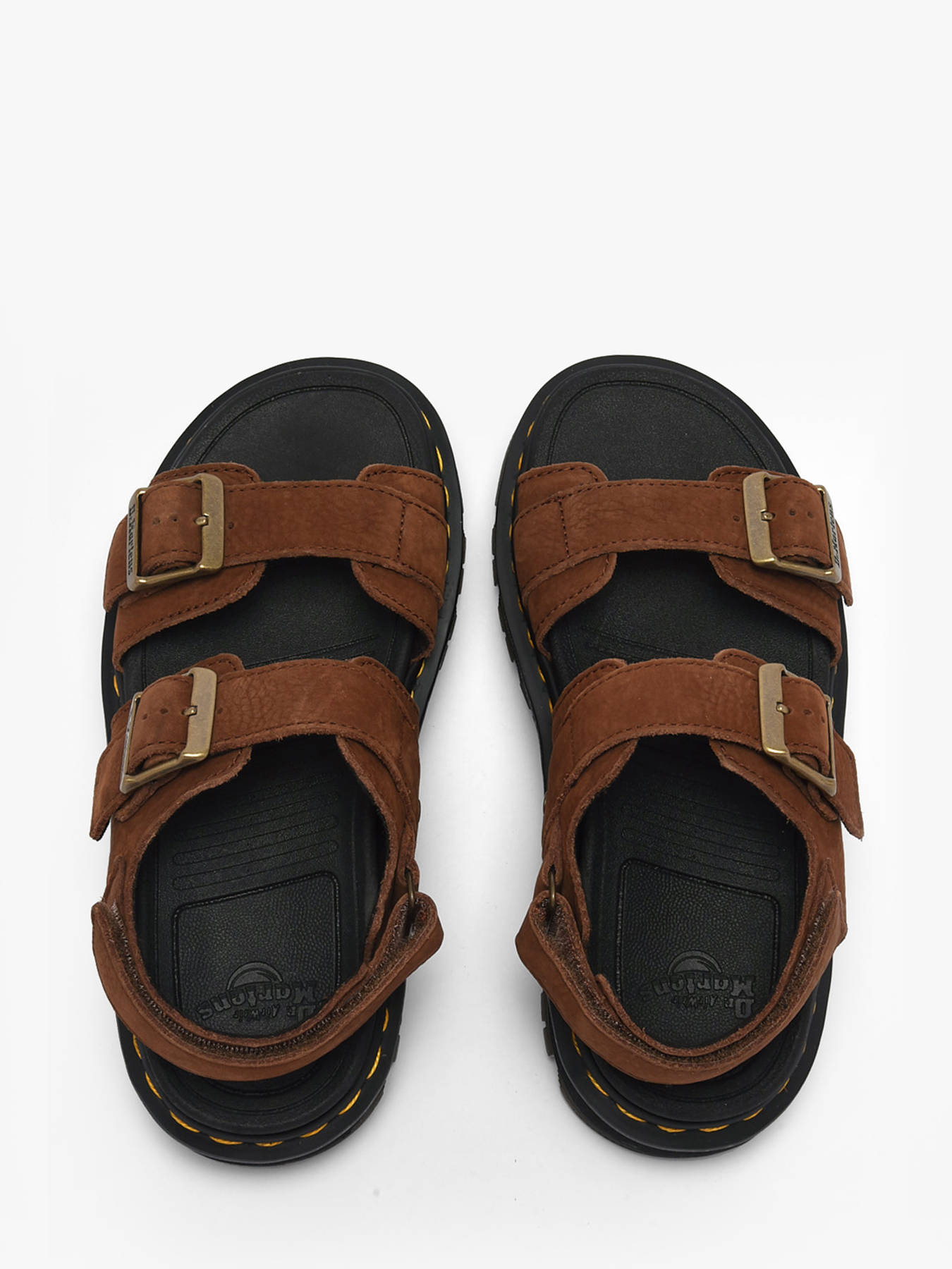 The Zebzag leather sandals by Dr. Martens deliver a bold rock attitude combined with everyday comfort. Crafted in brown nubuck, they feature a soft, slightly textured and durable leather upper designed to last. Equipped with two adjustable buckles and a riptape ankle strap, they offer excellent support while remaining easy to slip on. The ergonomic Zebzag sole provides reliable foot support without adding unnecessary weight, making them ideal for all-day wear. True to the Dr. Martens identity, they showcase iconic details such as yellow stitching, exaggerated grooves and a distinctive outsole pattern. Confident, edgy and versatile, these sandals are perfect for adding character to urban summer outfits with a strong and unmistakable style.